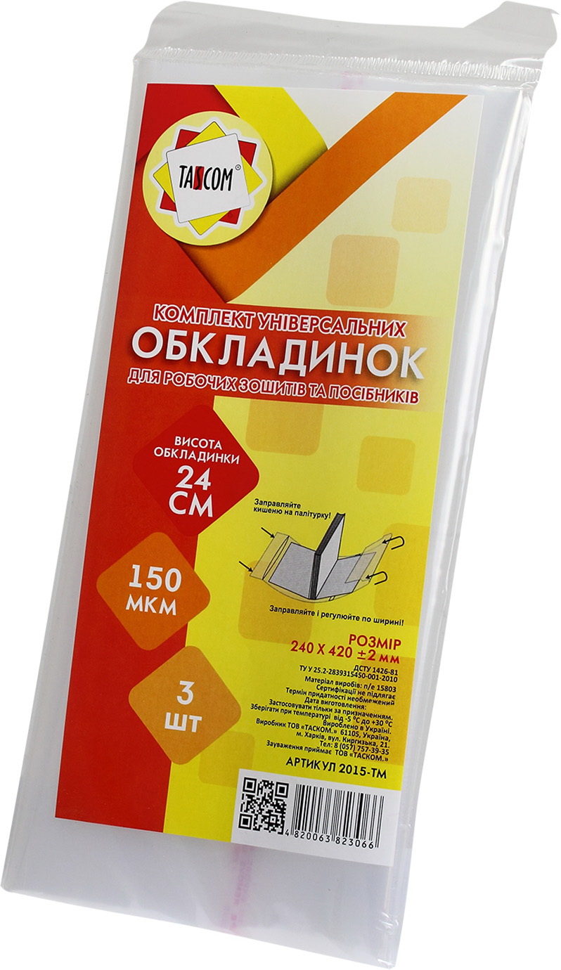 Комплект обклад. регульов. для роб. зошитів та посібників Tascom 150мкм 3шт №2015-ТМ(30)