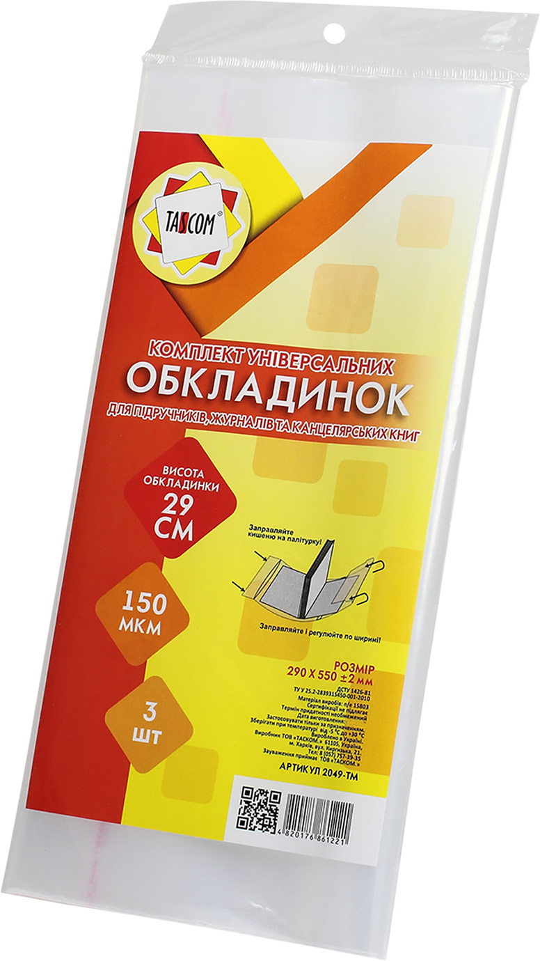 Комплект обклад. регульов. для журналів та канц. книг Tascom 150мкм 290х550мм 3шт №2049-ТМ
