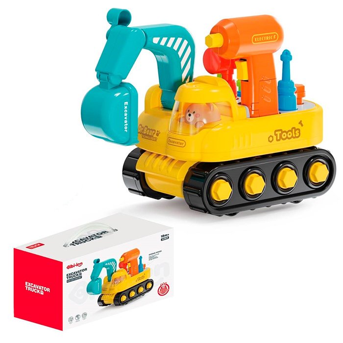 Конструктор екскаватор 26см,на бат-ці,на шурупах,муз.,шуруповерт,в кор-ці,26,5х16х14см