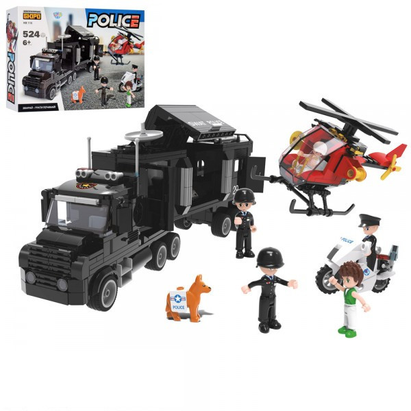 Конструктор Поліція, машина,вертоліт,мотоцикл,фігурка,524дет.,в кор-ці №KB110(12)