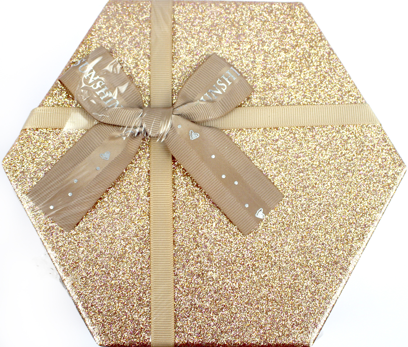 Коробка подарункова 16х8см шестикутна,золотий глітер №KR-018-7-M