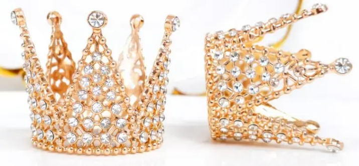 Корона метал. міні рожеве золото з білим камінням 3х3,2см №16603(20)