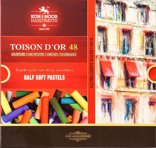 Суха м'яка пастель для художніх робіт. Набір із 48 кольорів. Діаметр 10 мм, довжина 37 мм. Складається в основному з чистого пігменту, з невеликою кількістю сполучної речовини. Висока світлостійкість. Картонна упаковка.