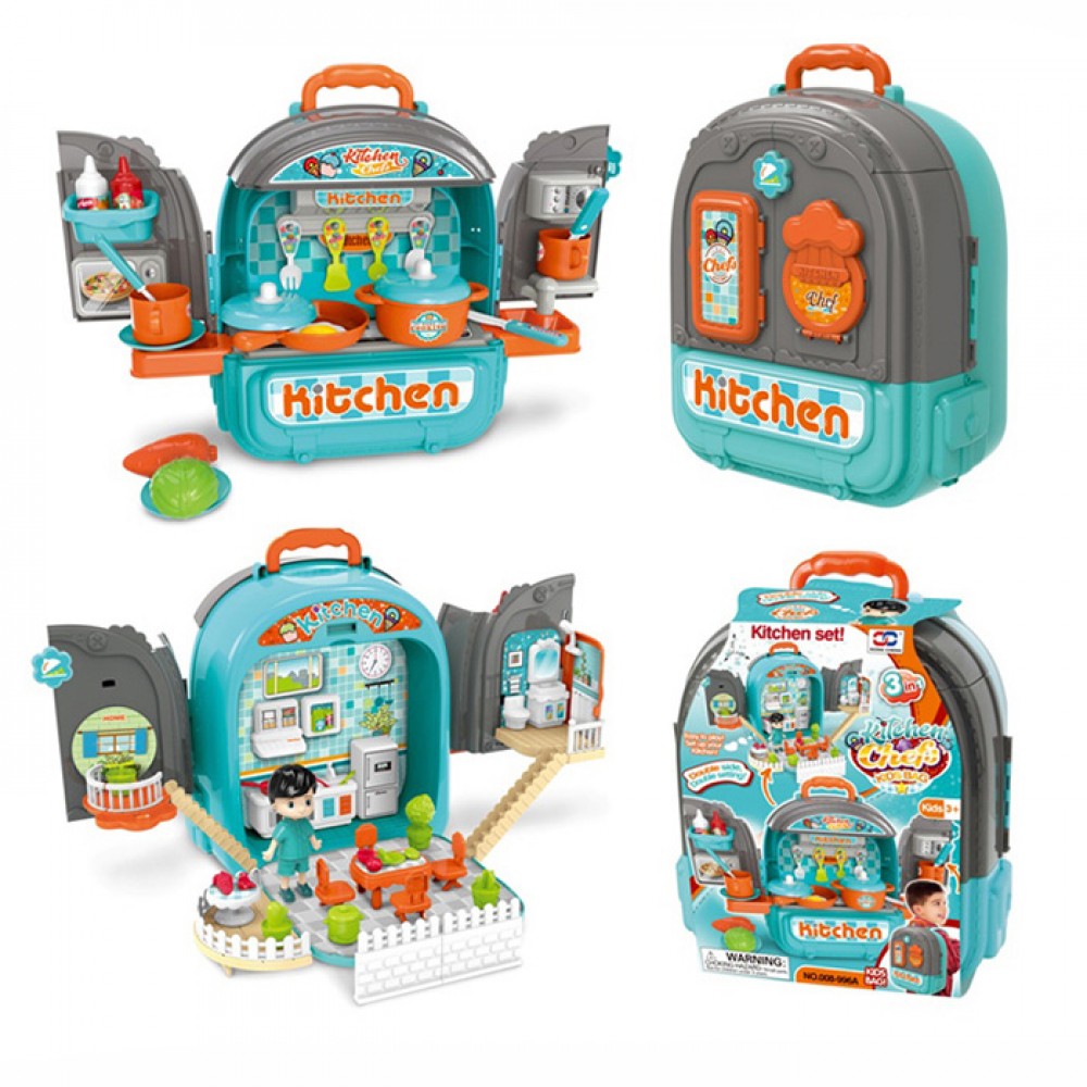 Кухня 3в1, посуд, продукти, фігурка, у валізі,25х30х15,5см №008-996A(12)