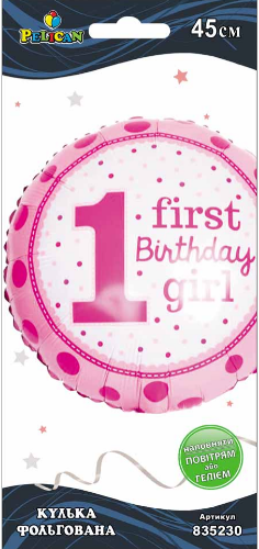 Кулька повітр. фольгована "1-й день народження дівчинки" 45см №835230/Pelican/(1)