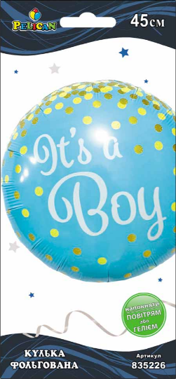 Кулька повітр. фольгована "party it's a boy" 45см №835226/Pelican/(5)