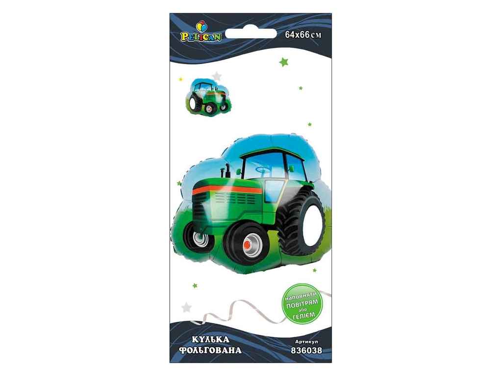 Кулька повітр. фольгована "Трактор зелений" 66см №836038/Pelican/(1)