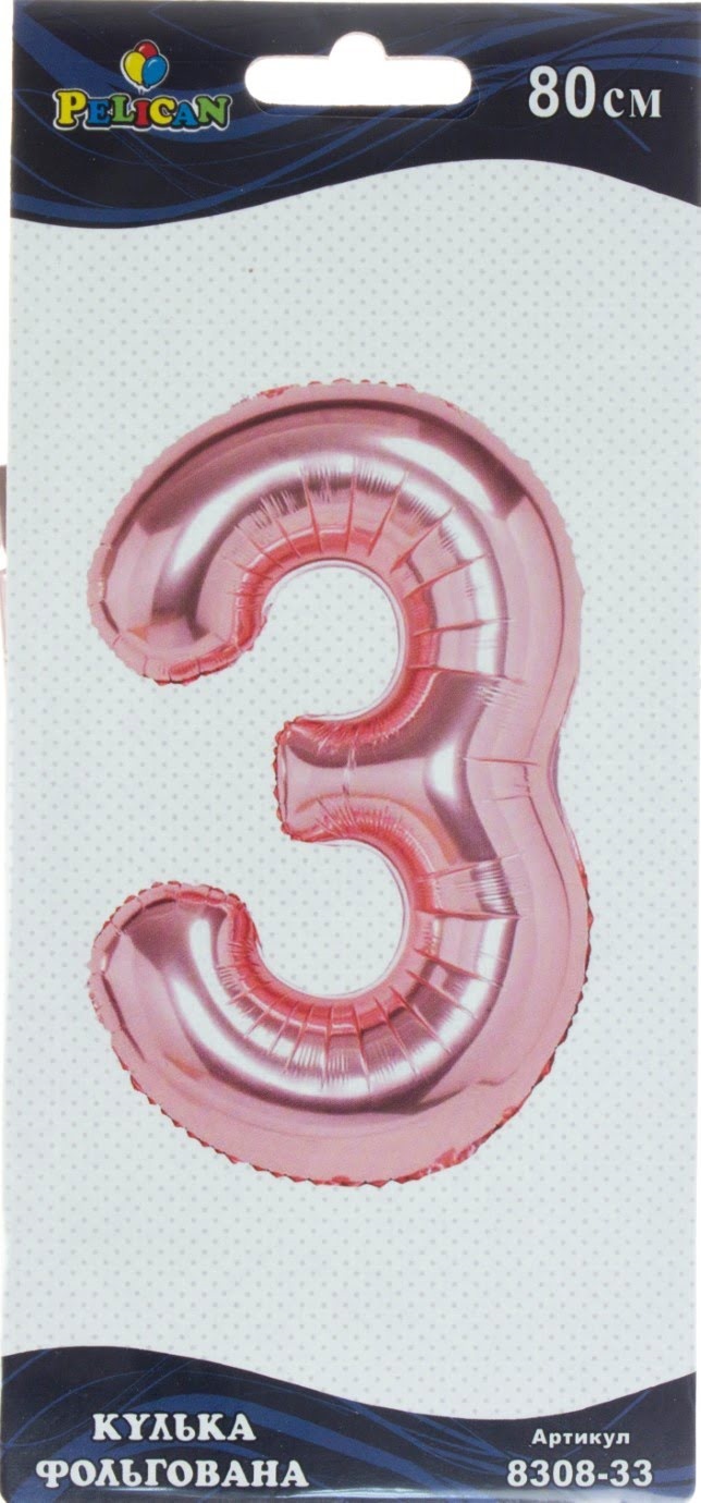 Кулька повітр. фольгована "Цифра-3" 80см рожеве золото №830833/Pelican/(1)(5)(20)