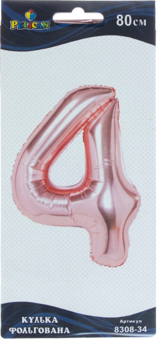 Кулька повітр. фольгована "Цифра-4" 80см рожеве золото №830834/Pelican/(1)(5)(20)