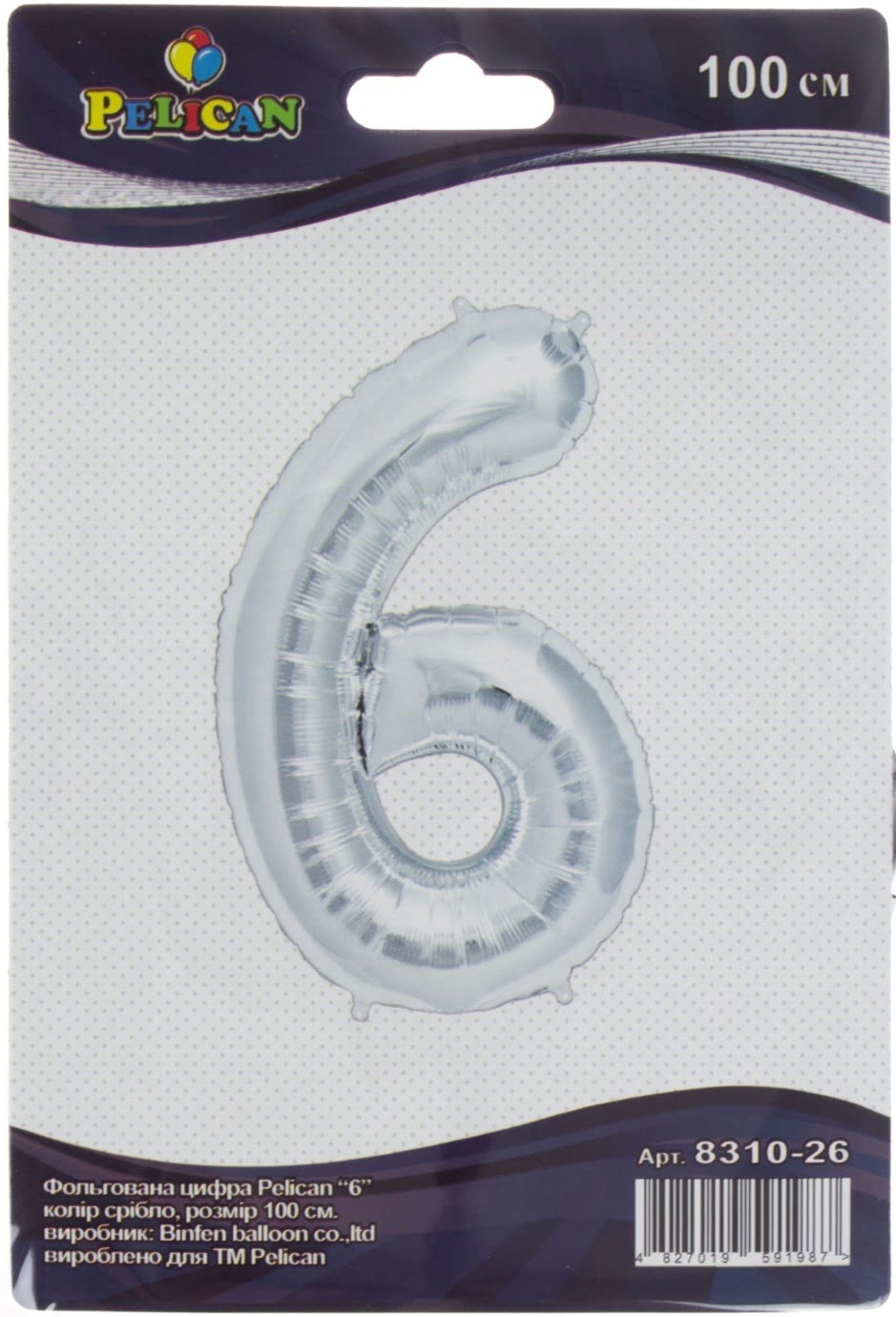Кулька повітр. фольгована "Цифра-6" 100см срібло №831026/Pelican(1)