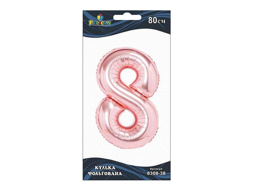 Кулька повітр. фольгована "Цифра-8" 80см рожеве золото №830838/Pelican/(1)(5)(10)(20)