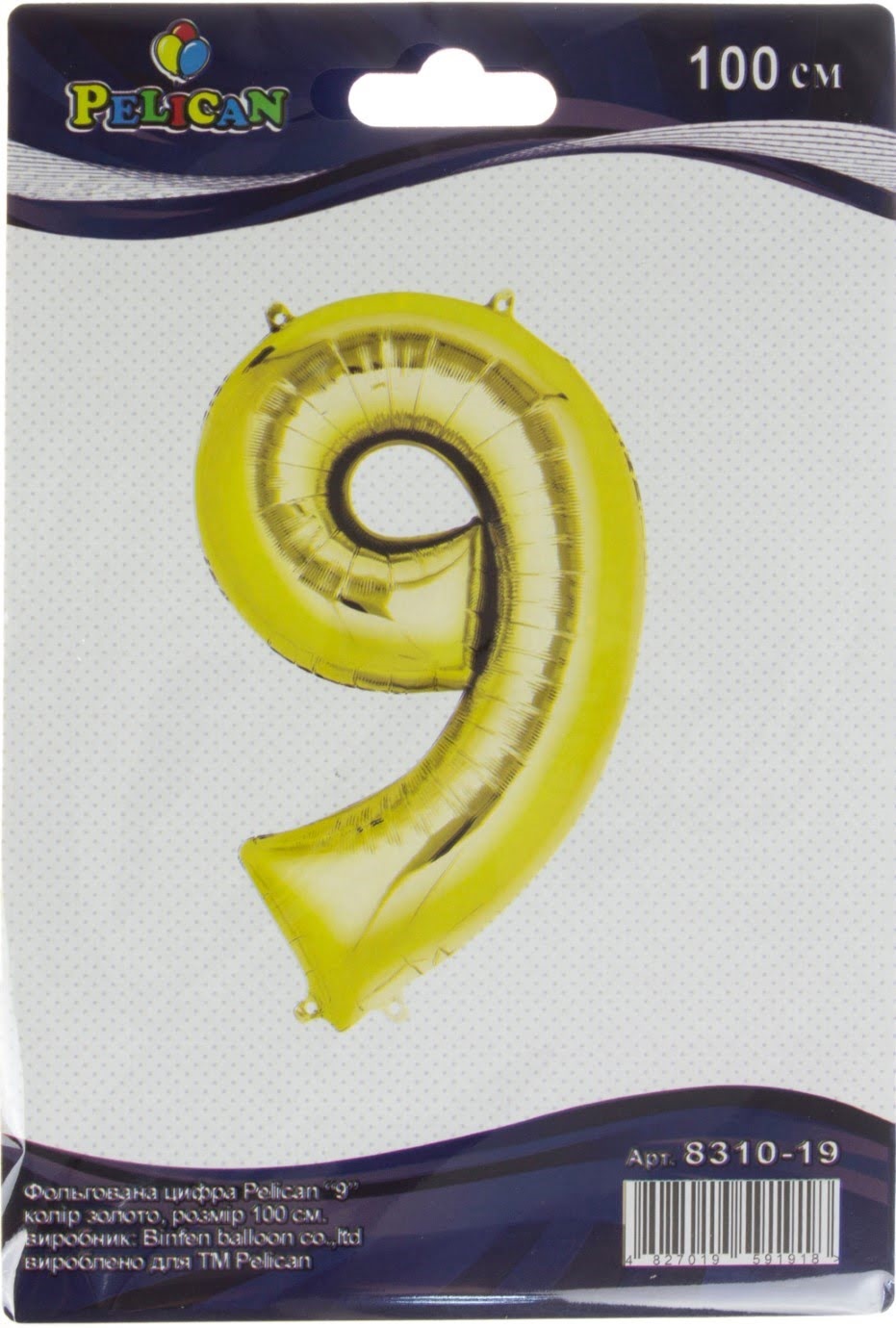 Кулька повітр. фольгована "Цифра-9" 100см золото №831019/Pelican(1)(100(20)