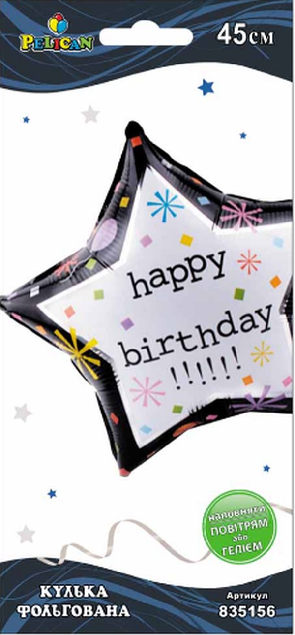 Кулька повітр. фольгована "зірка Happy Birthday" 45см №835156/Pelican/(5)