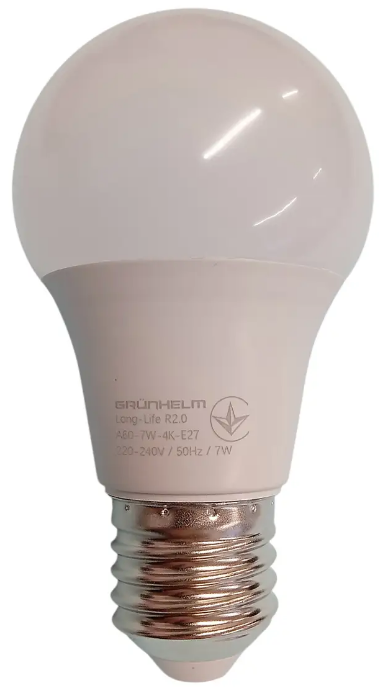 Лампа LED "Grunhelm" GEA60-7W-4K-E27 A60 7Вт 4000K Е27 700 Лм ,на акум. 1200mAh(50)