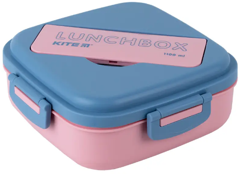 Ланчбокс Kite зроблений з харчового пластику. Бокс призначений для зберігання ланчу. Основа розділена на 3 відділення, доповнений столовим приладдям. Він щільно закривається. Ланчбокс також можна використовувати як лоток для зберігання їжі в холодильнику. Об'єм 1100 мл.