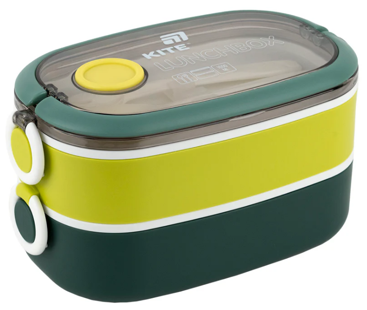 Ланч бокс пласт. "Kite" 1600мл подвійний з наповненням,зелений №K25-1181-3