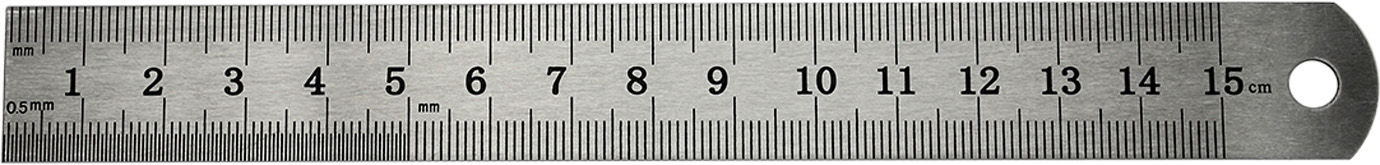 Двустороння лінійка 15 см, виготовлена із нержавіючої сталі, стійка до деформації. На одній стороні лінійки знаходиться 2 сантиметрові шкали, на іншій - 2 дюймові. Лінійка знаходиться в PVC чохлі.