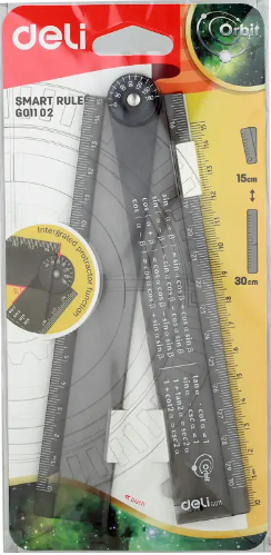 Лінійка пласт. 15/30см "Deli" №EG01102 Orbit розкладна з транспортиром,напівпрозор.(36)