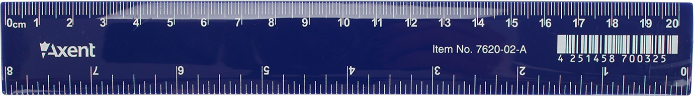 Пластикова синя лінійка 20 см має 2 шкали виміру : сантиметрову та дюймову. Індивідуальна блістерна упаковка.