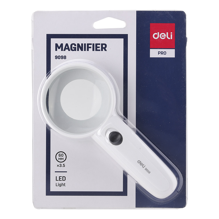 Лупа "Deli" №9098 65мм,3,5-кратне збільш. з підсвічуванням(12)
