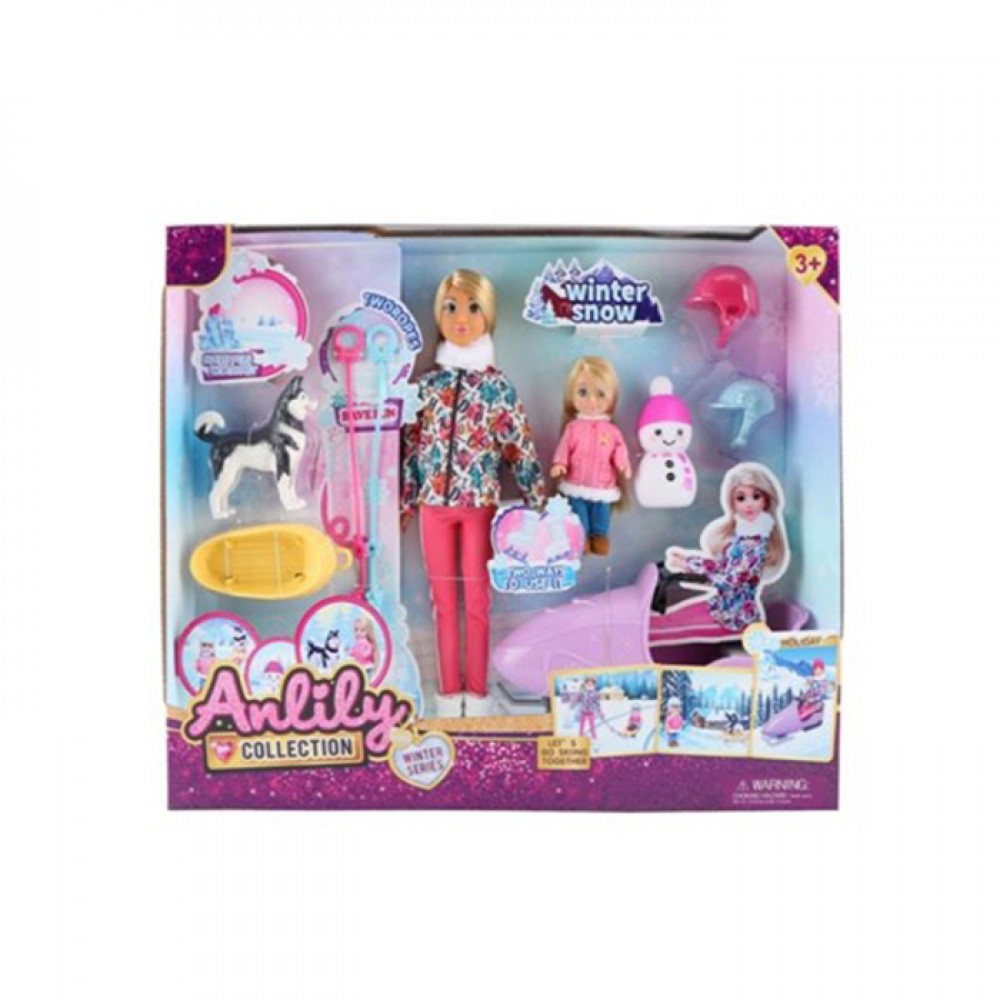 Лялька 30см,на шарнірах,з донькою 13см,снігокат,собака,сніговик 8см,в кор-ці №616008(16)
