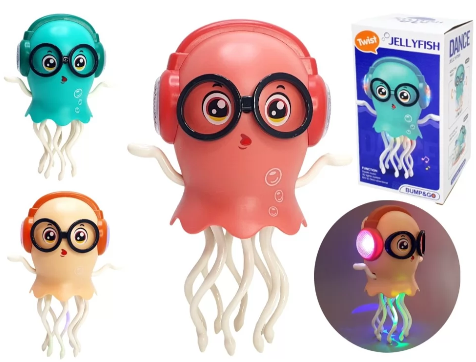 Медуза 20см,на бат-ці,їздить/танцює,об'їжає перешкоди,в кор-ці,3 кольори №HX178