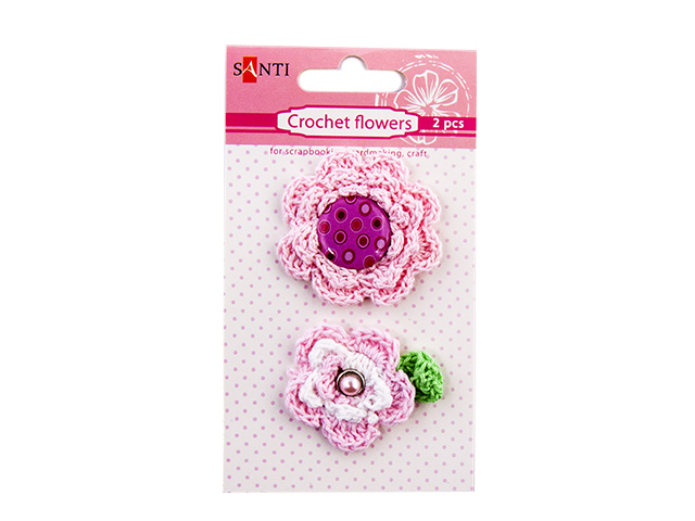 Набір брадс "Santi" квіти в`язані рожеві (2шт) №952617(12)