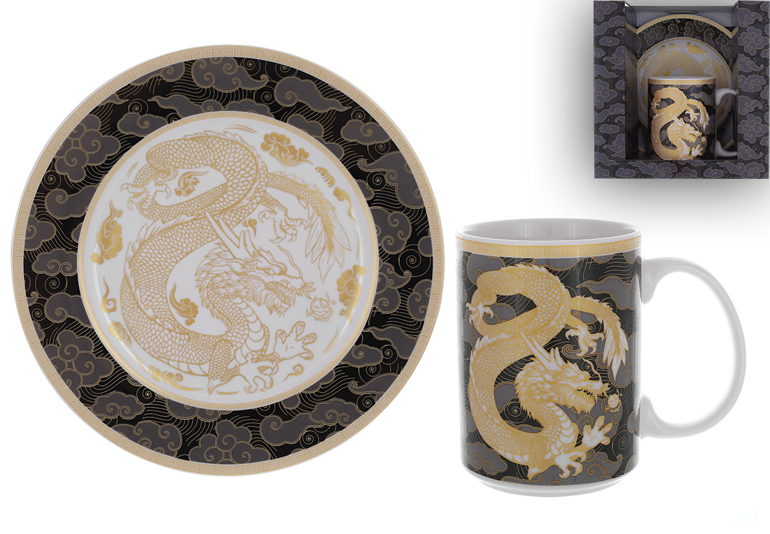 Набір чайний керам. 2предм.(чашка 500мл+блюд. 20см) "Символ року 2024 Дракон"№K018/Bonadi/