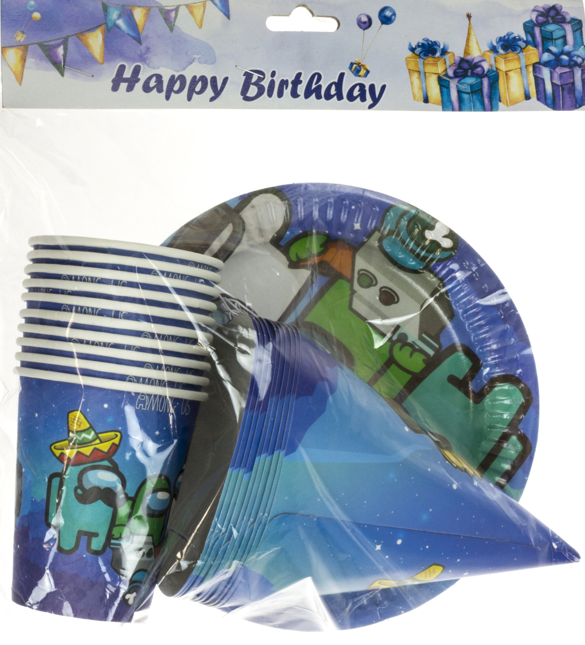Набір для святкування на 10 персон: стаканчик, тарілка, ковпак d-18см