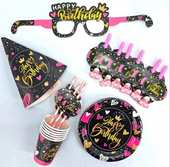 Набір для святкування на 36 предм. "Нарру Birhday" Рожеве серце №318/871318(1)(50)