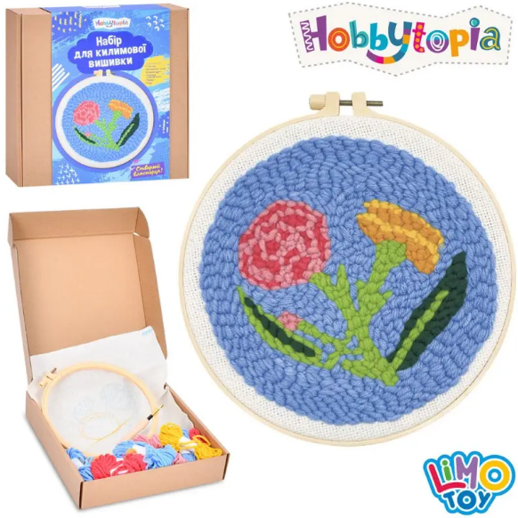 Набір для творч. "Квіти" килимова вишивка,канва 26х26см,нитки,п'яльця 20см№DYPN1008-1(40)