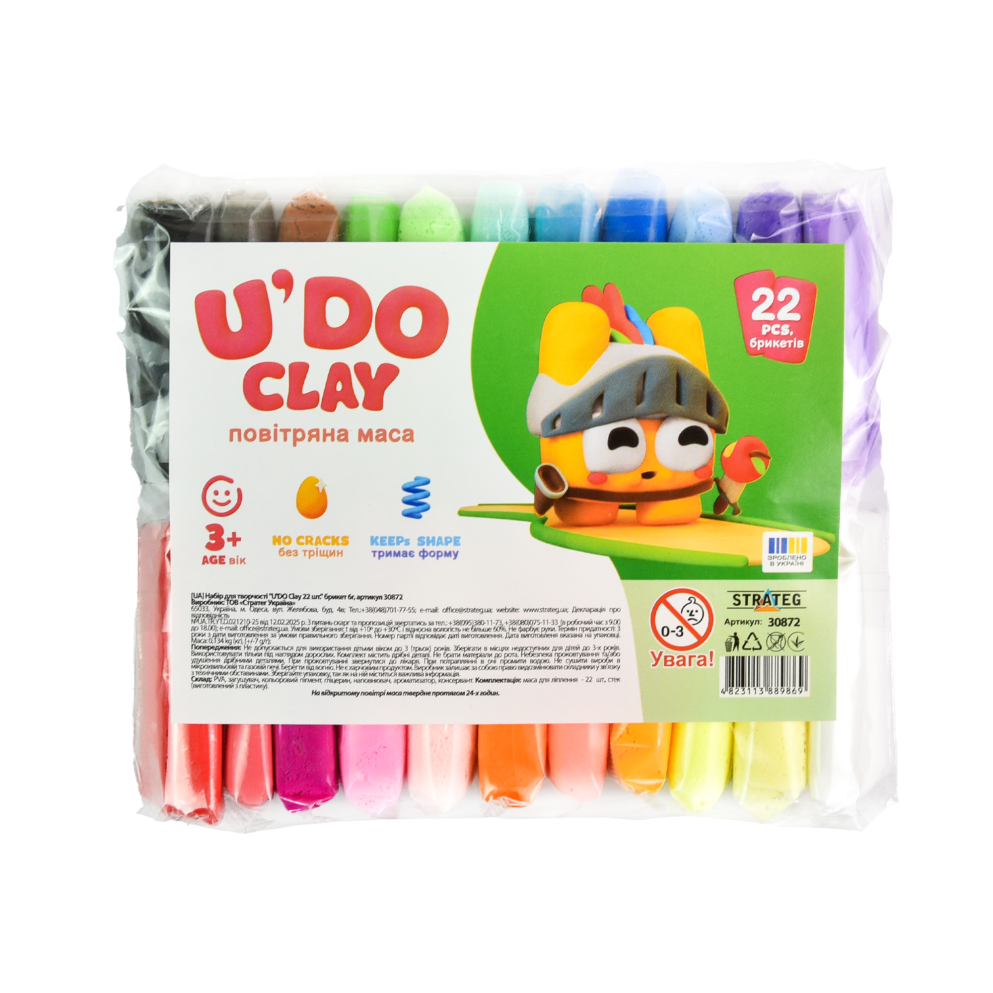 Набір для творчості "U'DO Cla" повітряний пласт. 22шт 6гр №30872/Strateg/(26)