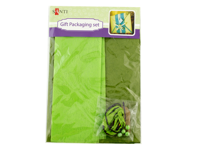 Набір включає: 1 аркуш паперу тишею 40 х 55 см (20 г / м2), 1 аркуш обгорткового паперу 40 х 55 см (58 г / м2), 1 набір аксесуарів (намистини, крафт етикетка, паперова мотузка).