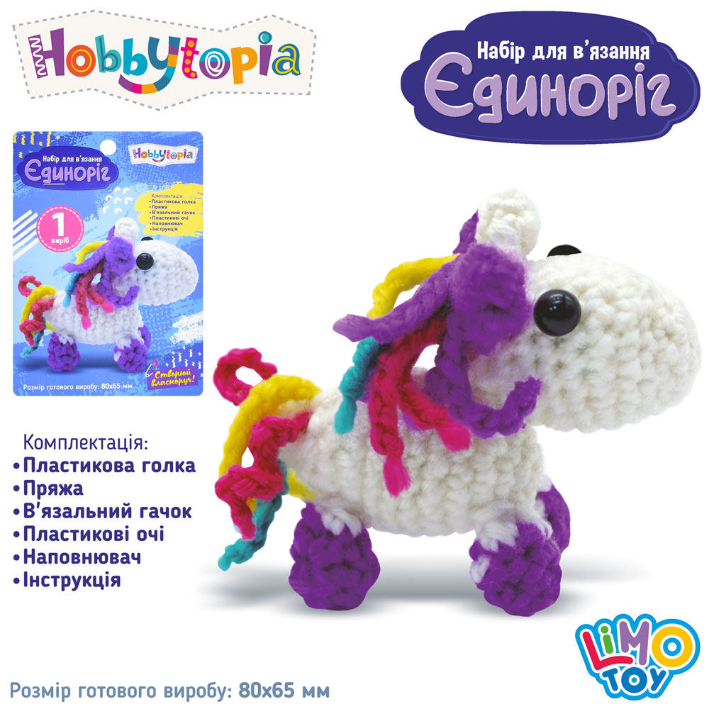 Набір для в'язання "Єдиноріг" 80-65мм,пласт. голка,пряжа,гачок,наповнювач №M 5864 UA(200)