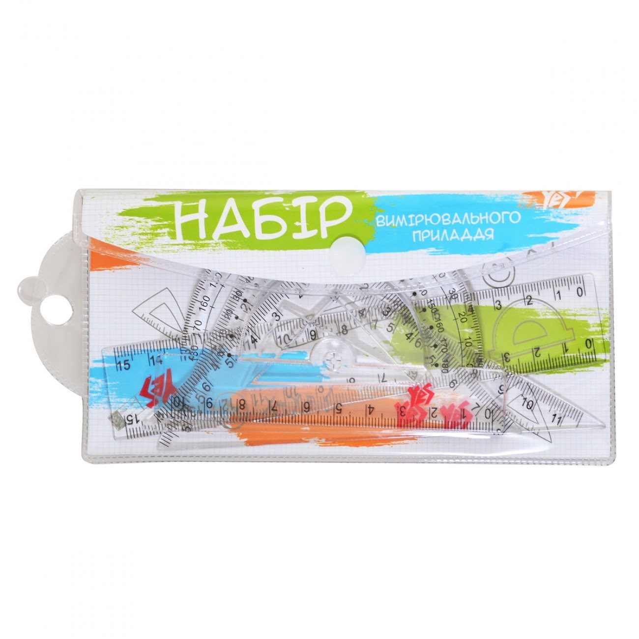 Набір лінійок ТМ Yes складається із незамінних інструментів для точних вимірювань та чітких ліній. Виготовлені з високоякісних матеріалів, вони забезпечують тривалу службу без пошкоджень. Набір торгової марки Yes призначений для створення креслень, побудов, малюнків, вимірювання лінійних розмірів, відстаней. Набір упакований у прозорий ПВХ чохол, який зручно зберігати та носити із собою. Характеристики: - склад набору: лінійка 15 см, транспортир 180 °, трикутник рівнобедрений 8х8 см, трикутник прямокутний 11х6 см. - підходить для лівші та правші; - матеріал: пластик; - прозорий корпус. Лінійки бренду Yes можна доповнити трендовими канцелярськими товарами з однойменної колекції.