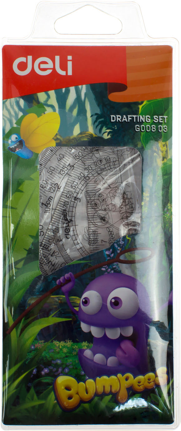 Набір геометричний "Deli" Bumpees №EG00803 4предм.(лінійка 15см,2трикутники,транспортир)