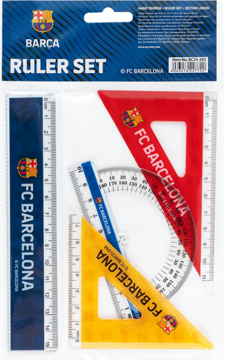 Набір геометричний "Kite" №BC25-282 FC Barcelona(лін. 15см,2косинця,транспортир)(24)(288)