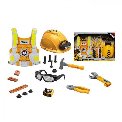 Набір інструментів: жилет,маска,окуляри,молоток,плоскогубці,болти,світло №T015A(12)