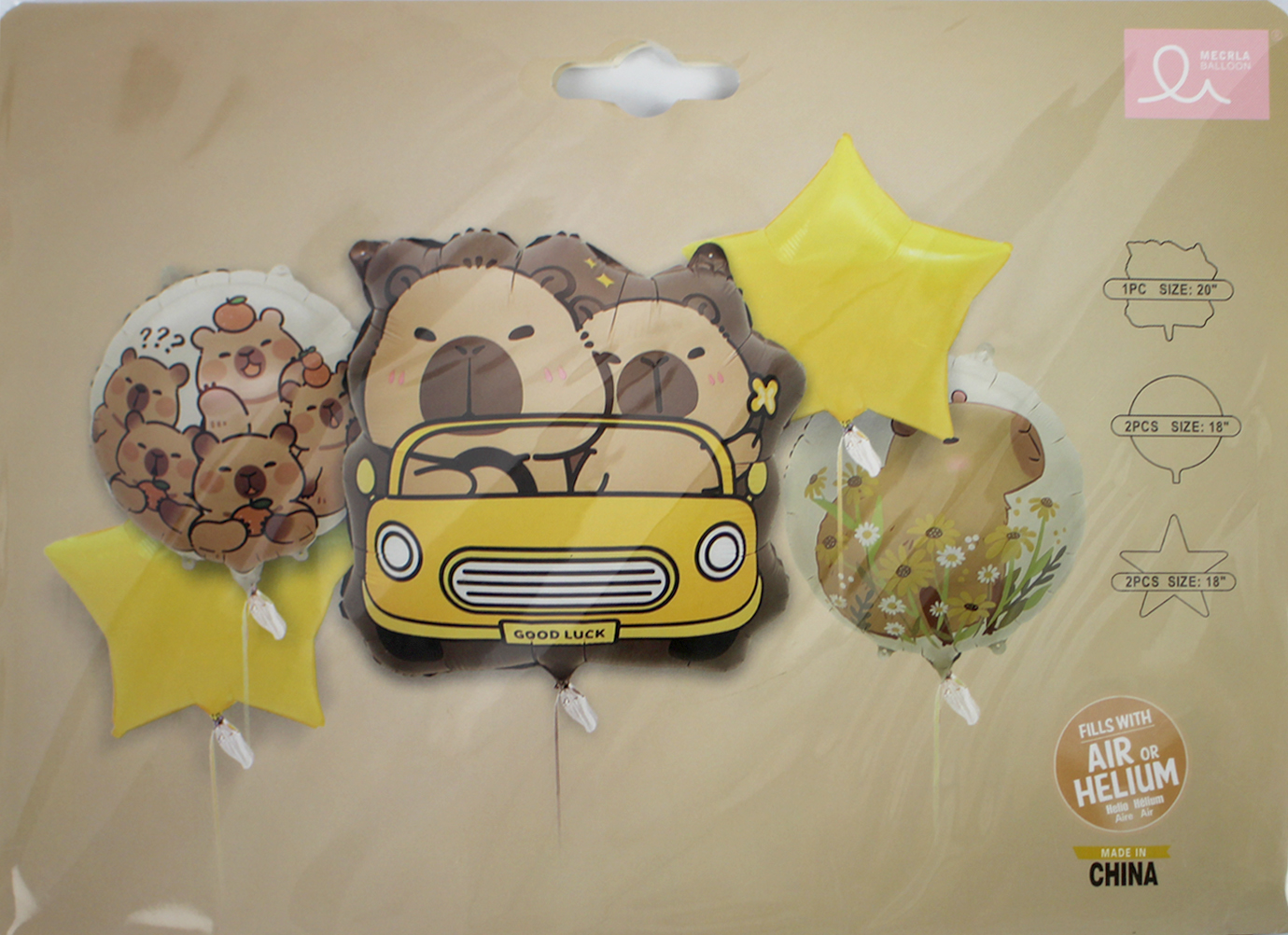 Набір кульок повітр. фольг. "Капібара на авто" 5шт №16007/ТХ-437(10)
