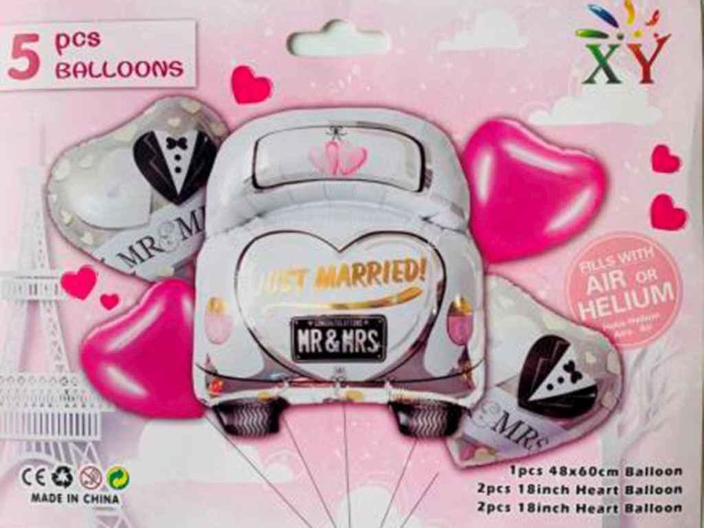 Набір кульок повітр. фольг. "Весільне авто" 5шт №836935/Pelican/