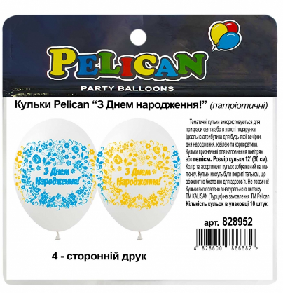 Набір кульок повітр. латексних 12"/30см "З Днем народження" 10шт патріот. №828952/Pelican/