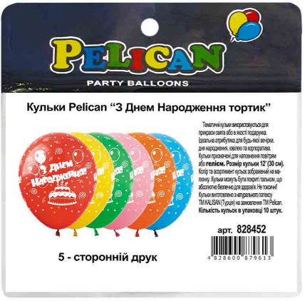 Набір кульок повітр. латексних 12"/30см "З Днем Народження тортик"10шт №828452/Pelican/(5)