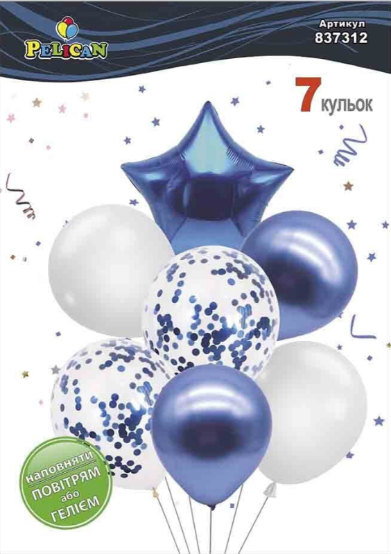 Набір кульок повітр. латексних 12"/30см "Зірка,біло-синій з хромом" 7шт №837312/Pelican/