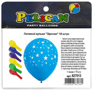 Набір кульок повітр. латексних 12"/30см "Зірочки" 10шт №827013/Pelican/(5)