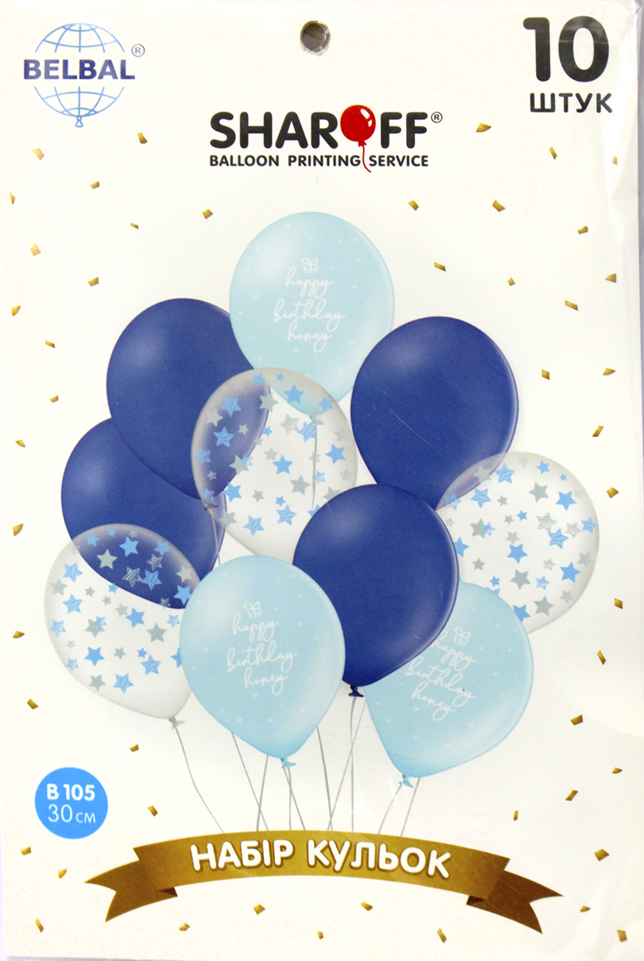 Набір кульок повітр. латексних12"/30см"Happy Birthday"блакитні,зірки на прозорому/Sharoff/