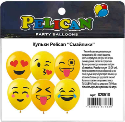 Набір кульок повітр. "Смайлики" 12"/30см 10шт №828518/Pelican/(1)(10)