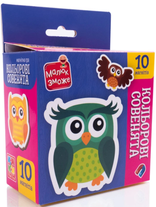 У розвиваючому наборі магнітів “Кольорові совенята” VT3106-38 оживає кумедна зграйка пташенят! Десять магнітних фігурок різнобарвних совенят запрошують малюків у захоплюючий світ кольорів, знайомлять з веселими мешканцями казкового лісу. Граючи з магнітами, дитина розвиває дрібну моторику, увагу, логічне мислення, мовлення та уяву. Набори сприяють вивченню кольорів, рахунку, розширенню загального кругозору. Магніти можна використовувати на холодильнику, магнітних дошках чи інших поверхнях, перетворюючи звичайний день на захоплюючу пригоду у світ знань. Комплектація: 10 магнітів. Вік: 3-5 років. Розмір коробки з європідвісом: 115 х 55 х140.