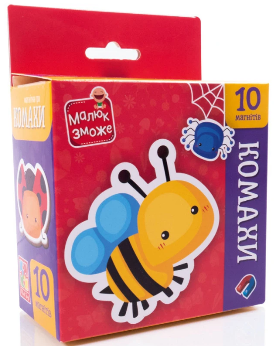 У розвиваючому наборі магнітів “Комахи” VT3106-32 оживають метушливі комахи! Десять магнітних фігурок комах запрошують малюків у закхоплючий світ природи та знайомлять із різноманітними мешканцями зелених галявин і садів. Граючи з магнітами, дитина розвиває дрібну моторику, увагу, логічне мислення, мовлення та уяву. Набори сприяють вивченню кольорів, рахунку, назв комах і розширенню загального кругозору. Магніти можна використовувати на холодильнику, магнітних дошках чи інших поверхнях, перетворюючи звичайний день на захоплюючу пригоду у світ знань. Комплектація: 10 магнітів. Вік: 3-5 років. Розмір коробки з європідвісом: 115 х 55 х140 мм.