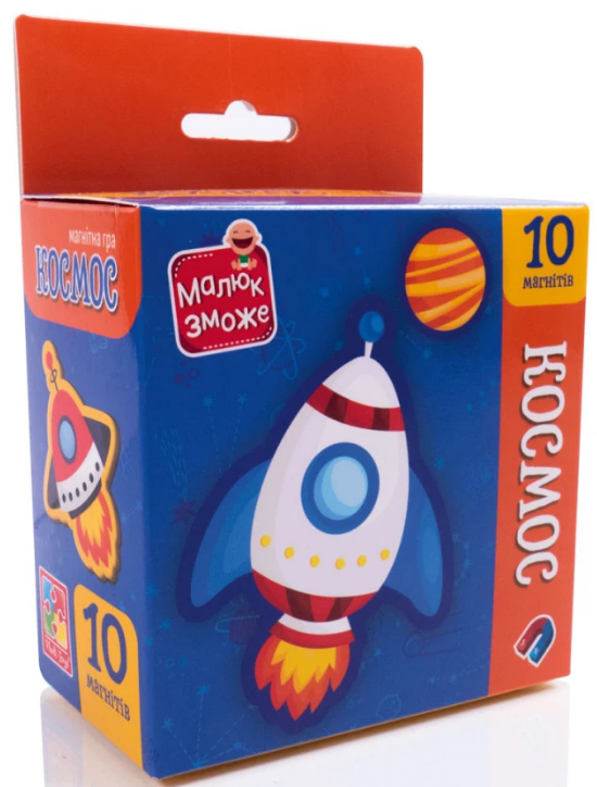 У розвиваючому наборі магнітів “Космос” VT3106-34 оживають загадкові космічні об’єкти! Десять магнітних фігурок космічної тематики запрошують малюків у захоплюючий світ між зірок та знайомлять із різноманітними небесними тілами, об'єктами, фантастичними мешканцями галактики Граючи з магнітами, дитина розвиває дрібну моторику, увагу, логічне мислення, мовлення та уяву. Набори сприяють вивченню кольорів, рахунку, назв космічних об’єктів і розширенню загального кругозору. Магніти можна використовувати на холодильнику, магнітних дошках чи інших поверхнях, перетворюючи звичайний день на захоплюючу пригоду у світ знань. Комплектація: 10 магнітів. Вік: 3-5 років. Розмір коробки з європідвісом: 115 х 55 х140.