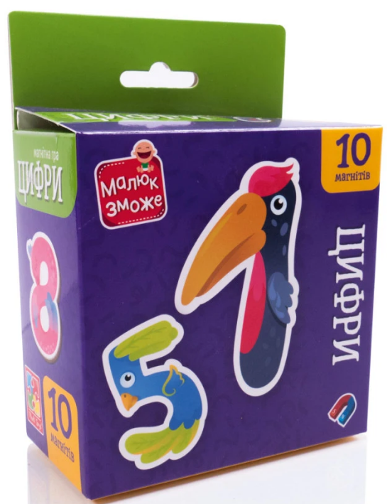 У розвиваючому наборі магнітів “Цифри” VT3106-37 оживає кольорова зграя цифропташок! Десять магнітних фігурок математичної тематики запрошують малюків у захоплюючий світ чисел, знайомлять із різноманітними мешканцями цифрового царства Граючи з магнітами, дитина розвиває дрібну моторику, увагу, логічне мислення, мовлення та уяву. Набори сприяють вивченню кольорів, рахунку, розширенню загального кругозору. Магніти можна використовувати на холодильнику, магнітних дошках чи інших поверхнях, перетворюючи звичайний день на захоплюючу пригоду у світ знань. Комплектація: 10 магнітів. Вік: 3-5 років. Розмір коробки з європідвісом: 115 х 55 х140.